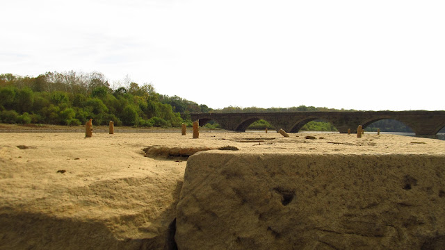 Another insanely nice day. Another trip out to Livermore. Today, with the water incredibly low, I went out to look at the old piers that were underwater over the summer. They didn't disappoint . There are still iron rods sticking out of the top that the bridge would have been attached to. The only potential mason mark I could see is probably just somebody's carved initials. We'll get into that in a little bit. I did locate additional mason marks on the west abutment that were underwater before. The east abutment was on dry land today. I also looked again at the old Filmore side abutment for the road bridge between there and Livermore.