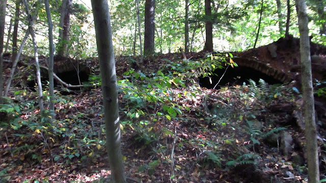 Last weekend we took a wonderful camping trip to Prince Gallitzin State Park. While we were there, we took a walk down the tracks south of Frugality to check out some coke ovens I had seen on an old mine map. I spent the better part of this week trying to figure out what we had. Initially, I mistakenly had them pegged as the Amsbury Coke Works, but I located those several miles to the south. That will be a nice winter trip!
